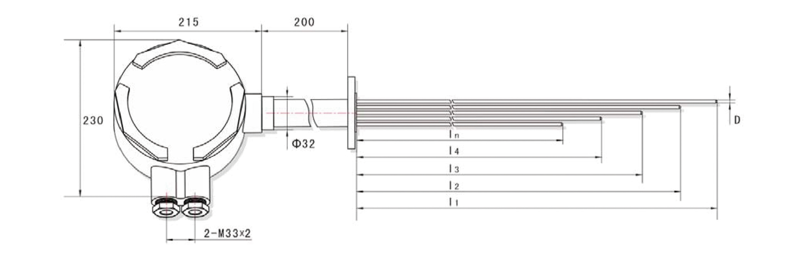 | Электрический интерфейс | Многоточечная взрывозащищенная распределительная коробка, оснащенная 2 электрическими интерфейсами со стандартным размером M33x2 |