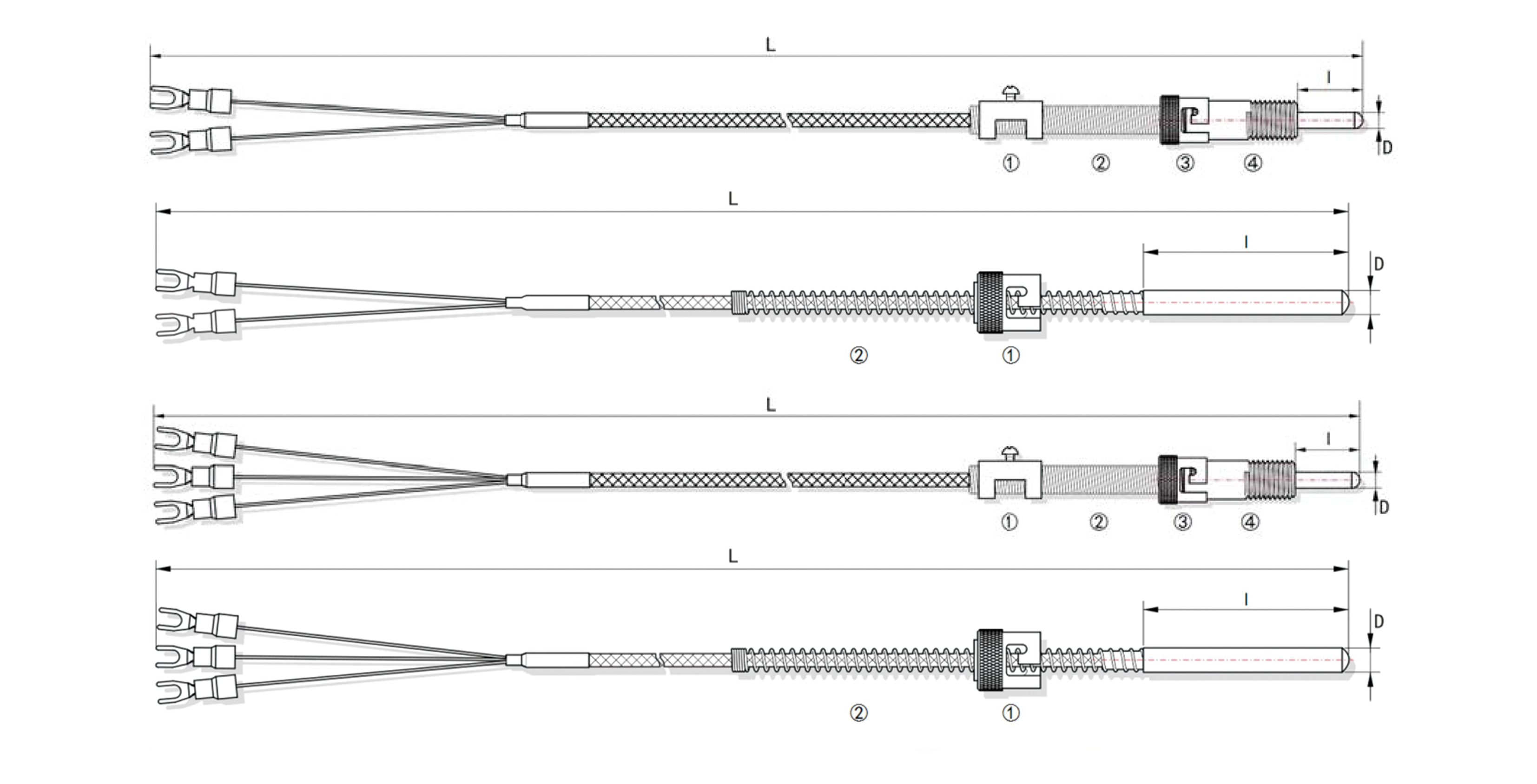 ① Крепление пружины ② Пружина ⑧ Пружинный зажим ④ Резьбовое основание |